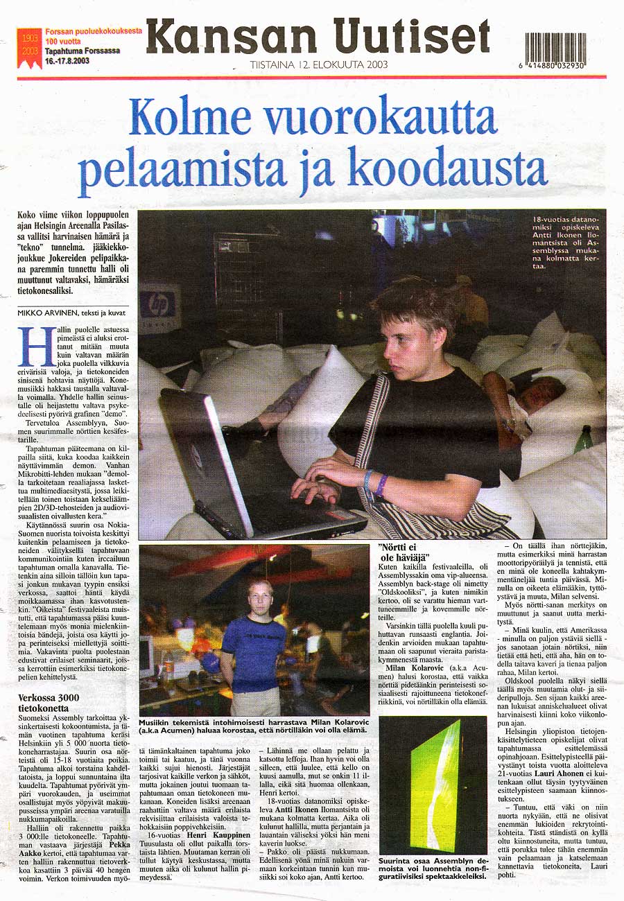 teki artikkelin Assembly'2003 multimediatapahtumasta