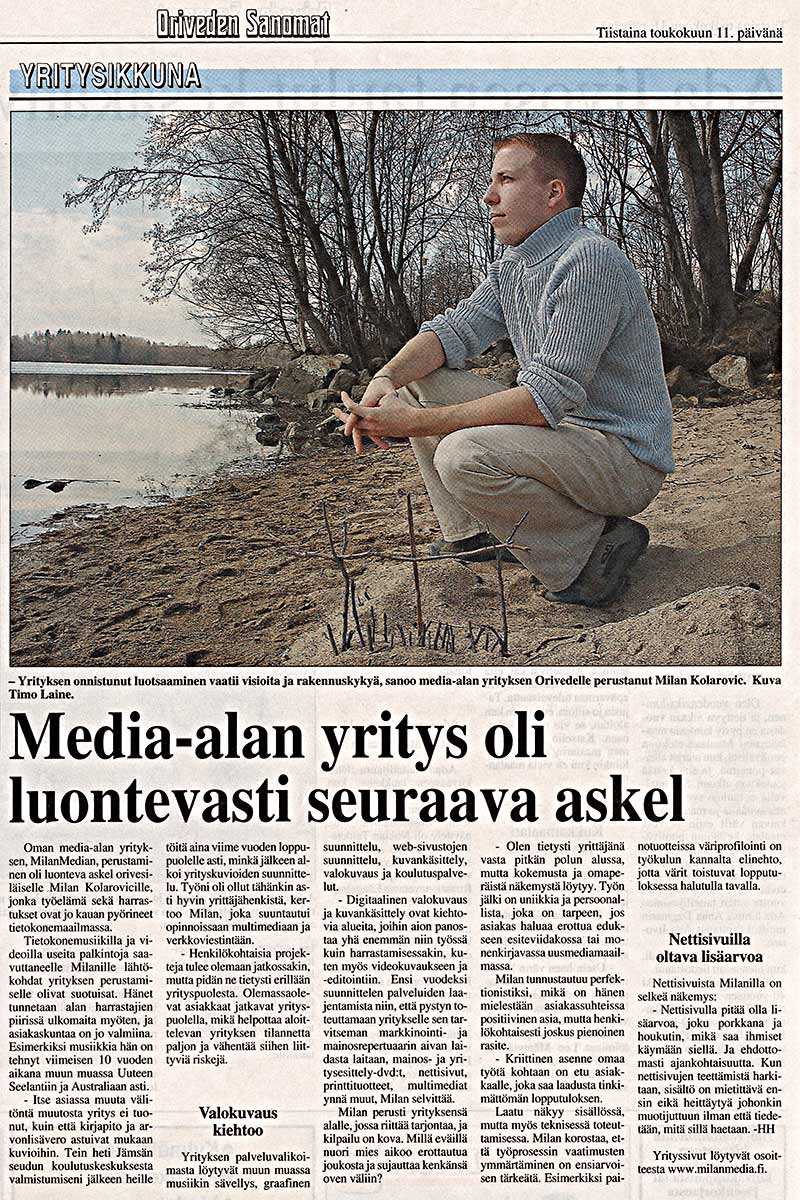 Haastattelu käsittelee pääosin yritystäni MilanMediaa.