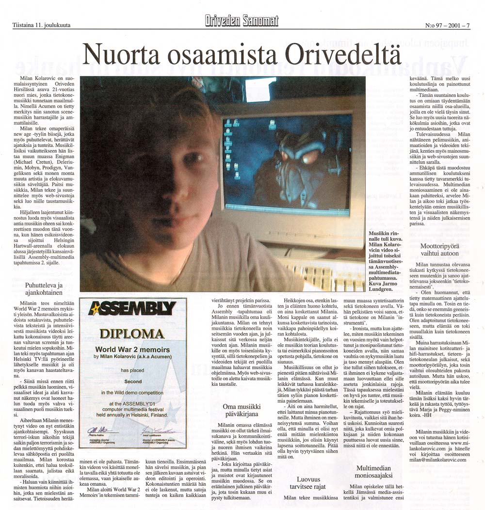 suomalainen tietokonelehti MMMag Multimedia Magazinen reportteri teki haastattelua minusta.